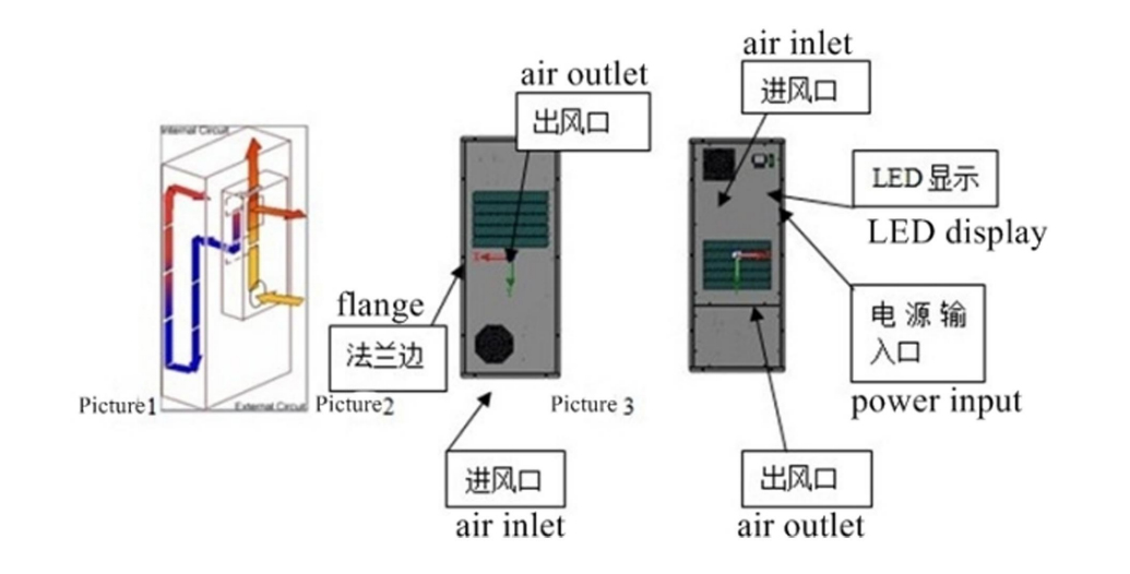 Frente de la unidad (circulación exterior) como se muestra en la Figura 2; parte trasera de la unidad (circulación interior) como se muestra en la Figura 3.